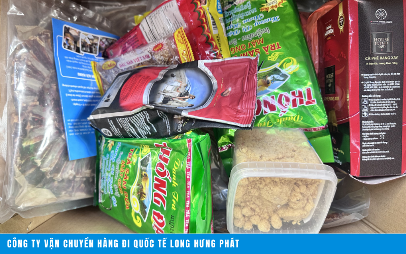 - Thực phẩm khô: Các loại thực phẩm khô như bánh kẹo, mực khô, cá khô, gia vị hoặc đặc sản Việt Nam cũng là những mặt hàng được gửi khá phổ biến.